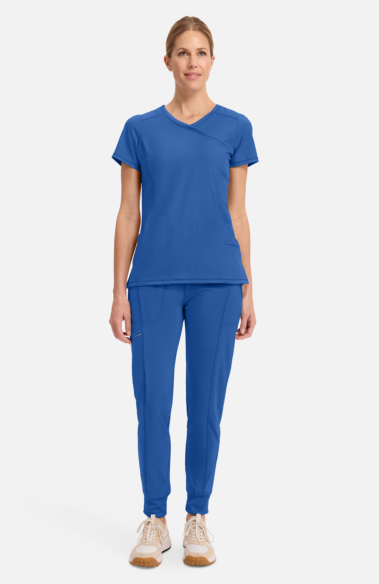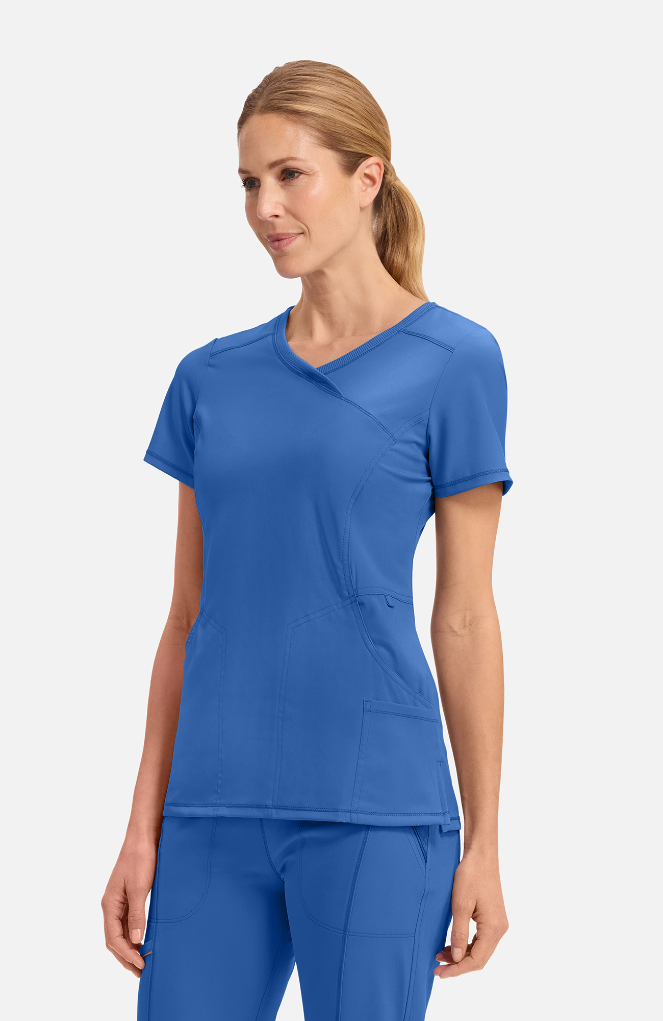 Ce haut à la coupe contemporaine comporte deux poches intégrées sur le devant, un anneau en forme de logo au-dessus de la poche gauche, une poche ciseau à gauche, une poche intérieure, des coutures princesse sur le devant et le dos, et des aérations latérales. Le tricot côtelé extensible au centre du dos donne à ce haut sa forme amincissante et permet un mouvement et un confort accrus. Longueur au milieu du dos : 26 ». Le tissu popeline extensible confortable et le tricot côtelé super extensible sont la combinaison parfaite pour les professionnels de la santé.
