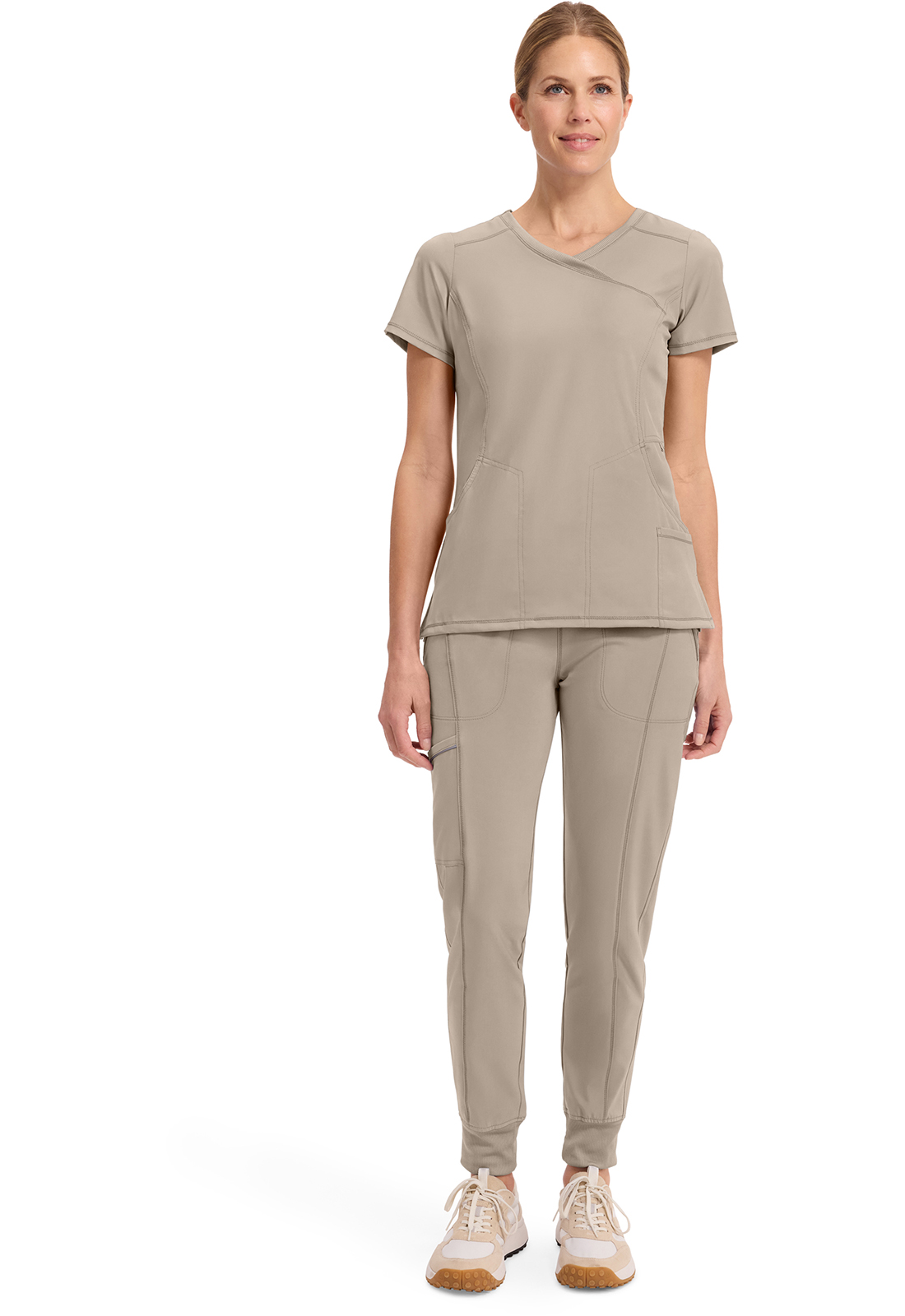 Ce haut à la coupe contemporaine comporte deux poches intégrées sur le devant, un anneau en forme de logo au-dessus de la poche gauche, une poche ciseau à gauche, une poche intérieure, des coutures princesse sur le devant et le dos, et des aérations latérales. Le tricot côtelé extensible au centre du dos donne à ce haut sa forme amincissante et permet un mouvement et un confort accrus. Longueur au milieu du dos : 26 ». Le tissu popeline extensible confortable et le tricot côtelé super extensible sont la combinaison parfaite pour les professionnels de la santé.